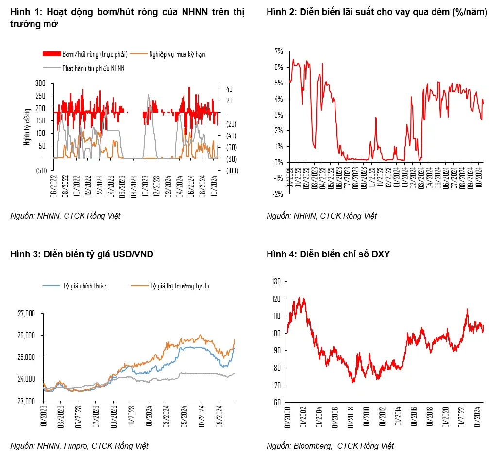 Từ đầu tháng 10/2024, NHNN cũng có những động thái chỉ đạo khuyến khích tăng trưởng tín dụng cuối năm. Đồng thời, tăng trưởng tín dụng năm sau cũng được đặt mục tiêu khá cao, trên 15%. Như vậy, chính sách tiền tệ vẫn theo hướng hỗ trợ tăng trưởng kinh tế đi cùng với việc ứng phó những biến động ngắn hạn như áp lực tỷ giá.