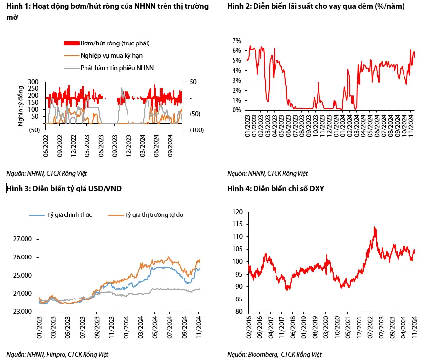 Áp lực tỷ giá tiếp tục tăng trong tháng 11/2024, tuy nhiên, theo quan sát của chúng tôi, NHNN không phải bán ngoại tệ như tháng trước, có thể do nhu cầu ngoại tệ không quá lớn.