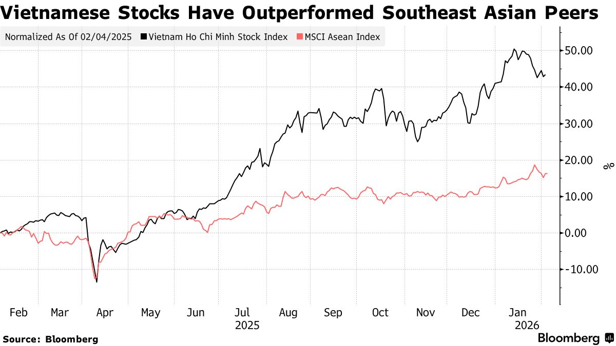 Vào tháng 10, quốc gia Đông Nam Á này đã giành được sự nâng hạng được chờ đợi từ lâu từ trạng thái "tầng lớp biên giới" của FTSE Russell. Việc phân loại lại sẽ chính thức có hiệu lực vào tháng 9, tùy thuộc vào đánh giá vào tháng 3. Các quan chức cũng đặt mục tiêu giành được sự thăng hạng tương tự từ MSCI Inc. vào cuối thập kỷ này.
